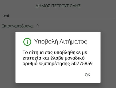 Και η Εφαρμογή σας ενημερώνει για την επιτυχή εγγραφή σας.